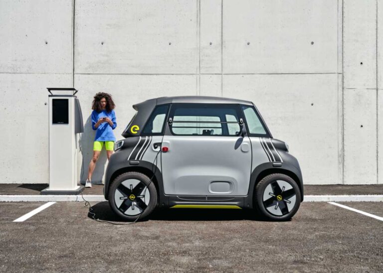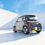 Cuenta con un único motor de 6 kW, que son aproximadamente 8 CV, y una batería de 5,5 kWh de iones de litio. Con esto, el Opel Rocks-e puede ofrecer una autonomía de 75 km. Su velocidad máxima está limitada a 45 km/h. Es un ‘coche’ de diseño bastante singular, porque es igual por delante que por detrás. Solo se puede diferenciar por el color de sus ópticas y tiene las puertas asimétricas. Esto quiere decir que una puerta se abre hacia delante y la otra hacia detrás. Todo este diseño está pensado para que sea más barato de fabricar y también sea más económico reparar.