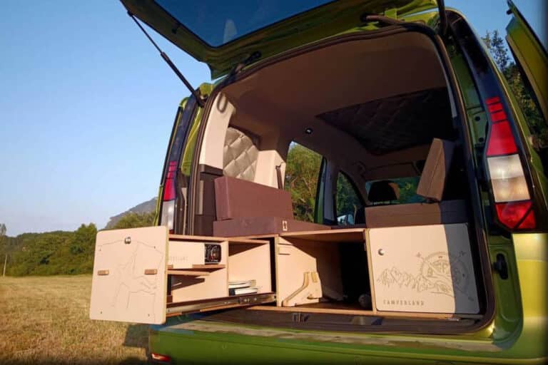 Este tipo de soluciones, depende de dónde las compremos y con qué características, pero tienen un precio de entre 800 y 1.800 euros. Suelen estar fabricadas en madera de contrachapado fenólico, que es una madera de muy alta calidad con gran resistencia incluso a la humedad, el agua o la exposición al sol. Y además es también una madera con muy poco peso. Y por supuesto, este tipo de kit camper incluyen siempre los colchones a medida, de buena calidad, para que ya tengamos todo listo para empezar a viajar.