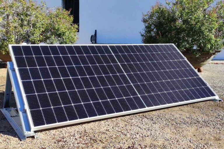 El kit solar sin instalación viene preparado para solo desplegar la estructura levantando el panel solar en cuestión, ajustar la inclinación en esta misma estructura y colocar la pieza correspondiente para que se quede fija la estructura. Si queremos podemos instalar algún tipo de anclaje ligero al suelo, por ejemplo, aunque no hace falta poner absolutamente nada más. Una vez hecho esto basta con conectar las placas a la corriente y listo, en menos de cinco minutos estás ahorrando en la factura de la luz.