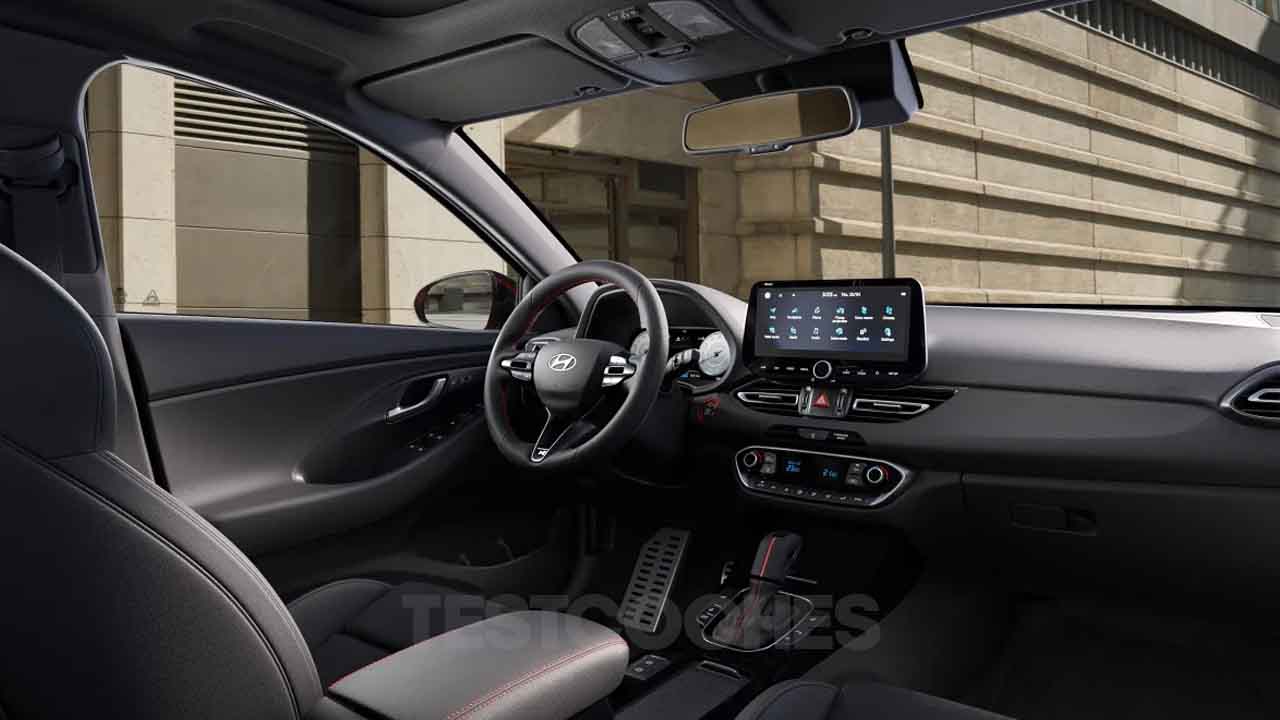 En el interior del Hyundai i30 2024 hay nuevas tapicerías de tela y un acabado en negro lacado para la consola. El cuadro de instrumentos sigue siendo analógico de serie, y cuenta con una pequeña pantalla de 4,2 pulgadas de tipo LCD. Puede contar con una pantalla de 10,25 pulgadas, y antes de esta actualización del modelo el tamaño era de 7 pulgadas como máximo y como parte del equipamiento opcional.