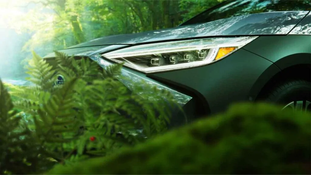 En estas primeras fotos oficiales del Subaru Solterra, como comentábamos, podemos ver ya cuál es el aspecto de sus ópticas delanteras y las traseras. A todas luces, en Subaru han trabajado especialmente en la aerodinámica de la carrocería con un diseño que muestra aristas, sí, pero que parece refinado al milímetro para optimizar la eficiencia del modelo. Se trata de un SUV, y podemos verlo en otra de sus fotografías, en la que nos enseña su silueta. Tiene una fuerte caída del techo a partir del pilar C, y en otras imágenes podemos apreciar la ‘cola de pato’ de la zaga, bajo la que están los pilotos en forma de ‘C’ hacia el interior.