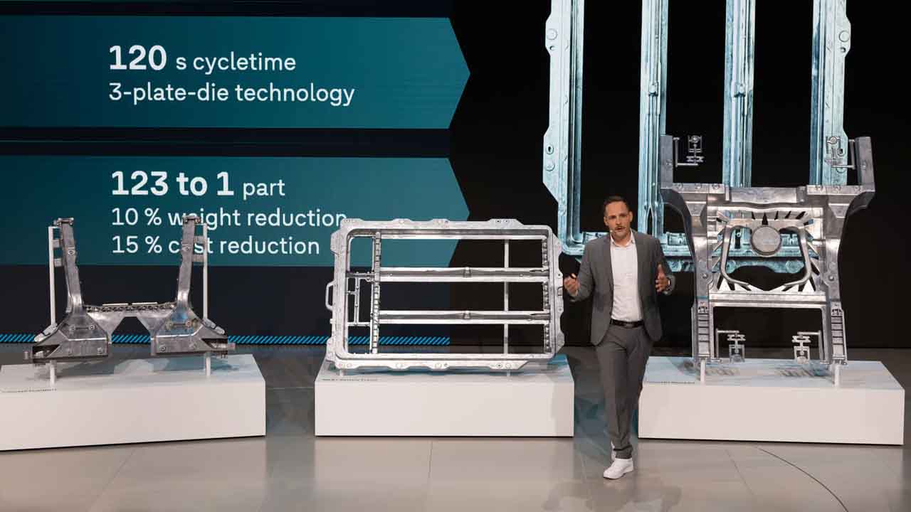 Produciendo solo la pieza central de la batería con Gigacasting, Volkswagen ya ha avanzado que van a lograr un ahorro del 15% en costes de producción y, además, un peso un 10% inferior. Esta pieza va a pasar a pesar tan solo 62 kg, lo que también redunda en la posibilidad de lograr un mayor nivel de eficiencia energética en estos nuevos coches eléctricos.