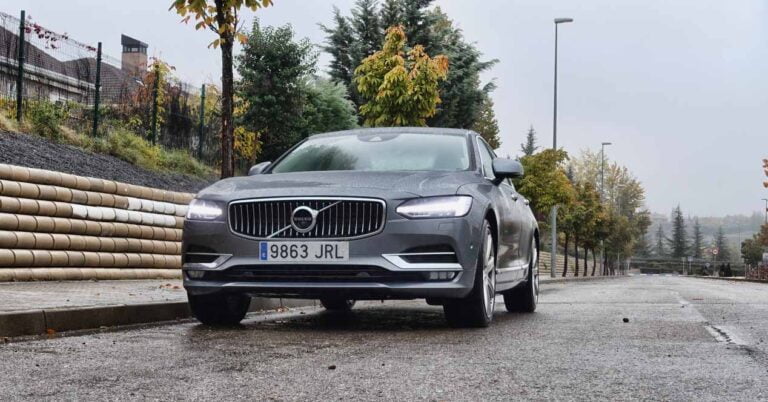 En este Volvo S90 D4, como ya te contaba tenemos un propulsor diésel de cuatro cilindros que desarrolla 190 CV de potencia y un par máximo de 400 Nm. En nuestra prueba esto se ha traducido en 6,2 l/100 km aproximadamente en autopista, y en torno a los 8 l/100 km en trazados urbanos, mientras que hemos subido hasta los 10,5 l/100 km en la prueba dinámica en un puerto de montaña. Es decir, que los consumos no están del todo mal teniendo en cuenta que pesa 1.800 kilos y mide 4,96 metros de largo. Eso sí, lo que no nos ha gustado demasiado son sus 55 litros de capacidad del depósito de combustible, que es lo que provoca que se quede algo corto en términos de autonomía.