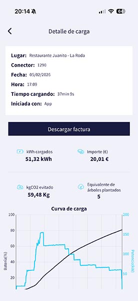 Lo puse a cargar al 4%, y lo dejé hasta el 81%, y como puedes ver en la captura de pantalla anterior tuvo tiempo para cargar 51,32 kWh. Fueron necesarios 37 minutos y 9 segundos para hacer esta carga. Alcanzó el rendimiento máximo del 17% al 21% con un máximo de 155 kW, aproximadamente. Y al poco tiempo bajó hasta 122 kW. En definitiva, en este tiempo cargué el 77% de la batería y con una potencia media de 82,88 kW.